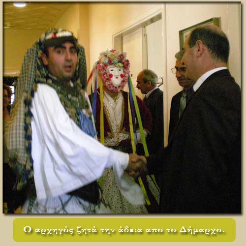 Αφού ολοκληρωθεί το μάζεμα(ΦΩΤΟ) το μπουλούκι καταφθάνει στο Δημαρχείο όπου ο αρχηγός θα πάρει την άδεια του Δημάρχου (τότε Τούρκου μουντίρη), για να ξεκινήσει ο χορός. Ο αρχηγός του μπουλουκιού(ΦΩΤΟ) μαζί με τη νύφη ανεβαίνουν στο Δήμαρχο, ενώ οι υπόλοιποι ζαλίζονται κάτω, και ζητούν την άδεια του, λέει χαρακτηριστικά ο αρχηγός αποκαλυπτόμενος ....Δήμαρχε ζητώ την άδεια να χορέψει το μπουλούκι στους δρόμους και τις πλατείες της πόλης.(ΦΩΤΟ)