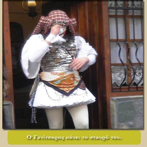 Μόλις το μπουλούκι φτάσει σπίτι, ο Γενίτσαρος τινάζεται 2-3 φορές(ΦΩΤΟ) στο παράθυρο, βγαίνει απο την πόρτα κάνοντας το σταυρό του(ΦΩΤΟ) και αφού πάρει χέρι τους δικούς του (πηδά επι τόπου),(ΦΩΤΟ) αναχωρεί με το μπουλούκι.