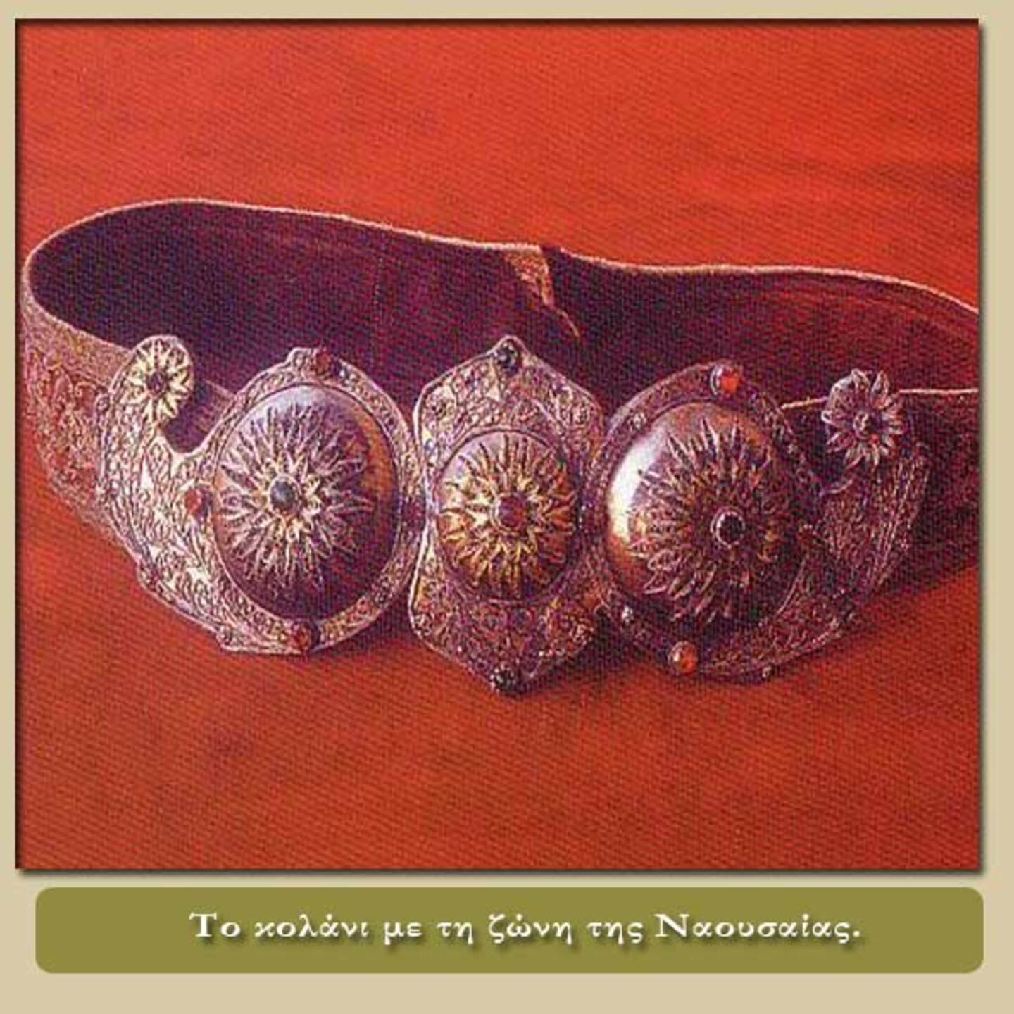 Το φουστάνι είναι συνήθως ανοιχτού χρώματος χρυσαφί, κοντόμεσο με βαθύ ημικύκλιο άνοιγμα στο μπούστο.Κάτω απο το φουστάνι φοριέται το πουκάμισο που διακρίνεται απο το καλό κισμηρένιο ύφασμα με τις μπιμπίλες του.Ο μπούστος καλύπτεται απο δύο τραχηλιές. Η μία απο μέσα φαίνεται λίγο και είναι λιγότερο χρυσοκεντημένη και η άλλη βγαίνει απο έξω με χάρη λίγο επάνω στο φόρεμα και αφήνει να φαίνονται τα πολύτιμα χρυσοκεντήματά της.Στα χέρια φοριούνται τα μανικάκια όπου η Ναουσαία με επιδέξιο τρόπο τα αφήνει να φαίνονται μέσα απο τα μανίκια.Ο λαιμός κοσμείται απο το γκιουρντάνι με τα φλουριά, ενώ κάτω απο το στήθος είναι το κολάνι περασμένο σε ζώνη φτιαγμένη απο δέρμα στην εσωτερική πλευρά και βελούδο απο έξω.Η ποδιά κάτω απο τη ζώνη είναι ένα μεταξωτό ύφασμα με κρόσσια γύρω απο τη μέση και τελειώνει στην αριστερή πλευρά της φορεσιάς.Το κεφαλοκάλυμμα είναι το τεπελούκι,το επάνω μέρος του (τεπές) έχει κεντημένο με χρυσή κλωστή το 8άκτινο ή 6άκτινο μακεδονικό αστέρι. Απο την κορυφή του τεπέ κρέμεται μία χρυσή φούντα, που πέφτει πίσω και τα χρυσά κρόσσια της έρχονται στον αριστερό ώμο.Πάνω απο το φουστάνι φοριέται το λιμπαντί που είναι κοντός εφαρμοστός επενδυτής με μανίκια που στο τελείωμα του σχημάτιζαν καρμά με χρυσό.