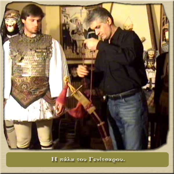 Τα τσαρούχια στα πόδια και η πάλα (σπαθί) μπαίνει διαγώνια από το δεξί ωμό και καταλήγει στην αριστερή πλευρά της μέσης.