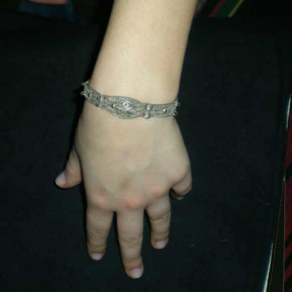 Τεράστια χειροποίητη δημιουργία σε τόσο μικρό μέγεθος. Φτιαγμένο στο χέρι απο ασημένιο σύρμα εμφανίζόντας την μεγάλη λεπτομέρεια κατασκευής. Ενώνεται με πύρο κάτω απο τον καρπό.