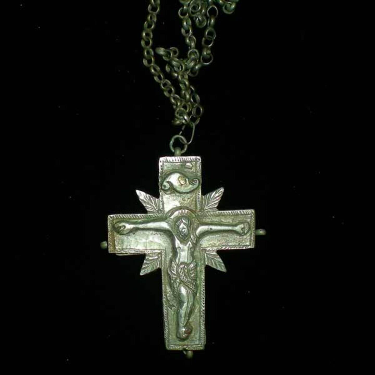 Σπάνιο δείγμα της παραδοσιακής ελληνικής αργυροχρυσοχοΐας, ο συγκεκριμένος σταυρός αποτελεί ένα αυθεντικό έργο τέχνης και πίστης. Κατασκευασμένος από ασήμι, φέρει περίτεχνη σκαλιστή διακόσμηση με λεπτομέρειες που αναδεικνύουν την επιδεξιότητα του τεχνίτη.